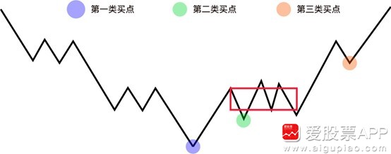 第二类买点定义:在类买点之后次回调不创新低的点,从空间角度考虑,是仅次于类买点的位置,具备一定的成本优势,图中绿色标注点为第二类买点,在一买的基础上,具备结构的稳定性。