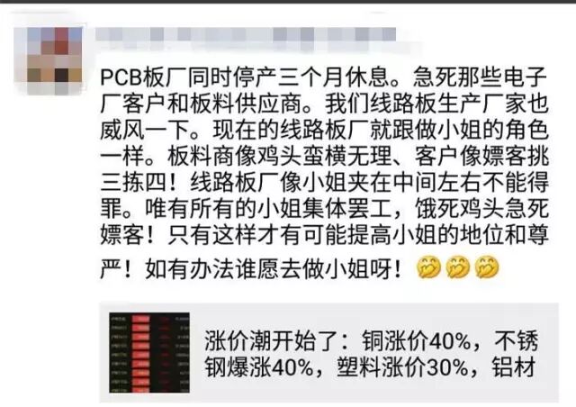 PCB相关企业接涨价通知都接到麻木: