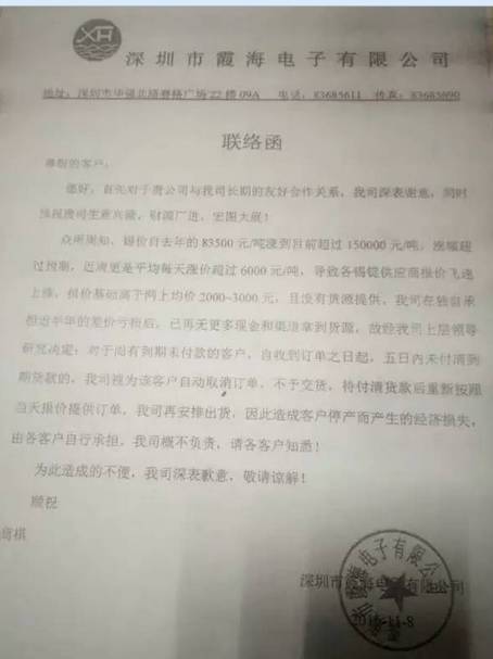 到了近日,原材料涨价幅度有的高至,更低也降幅13%;至于付款,已经全部由过去1个月到4个月的账期变为当月结或预付: