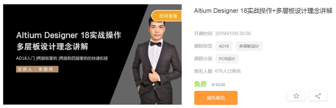 在正式介绍多层板设计的注意点前,先给大家介绍一下摩尔吧的重磅直播!Altium Designer官方认证讲师——志博教育李崇伟老师今晚来了!精讲两层到四层案例的快速衔接方法,解决实战操作的又一难题,PCB画板技术更上一层楼。