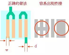 055、相邻焊盘需要相连的情况需要注意如果相邻的焊盘需要相连,首先确认在外面进行连接,防止连成一团造成桥接,同时注意此时的铜线的宽度。