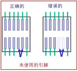 比如上图一个芯片其中两个引脚不要使用的情况,但是芯片实物引脚是存在的,如果像上图右边的方式两引脚就处于悬空状态很容易引起干扰。如果加上焊盘再把焊盘接地屏蔽能避免干扰。