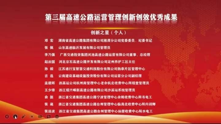 9月22日,第三届高速公路运营管理创新创效成果会举行,浙江省交通集团高速公路杭州南管理中心孟碧辉获第八届“中国路姐”奖状和奖杯后,又接过了创新创效之星个人奖。