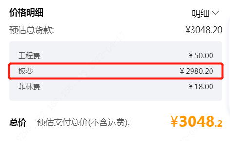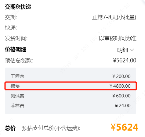01 嘉立创四层板:480元/平方米,10平米板材总价为4800元,下图为嘉立创价格截图: