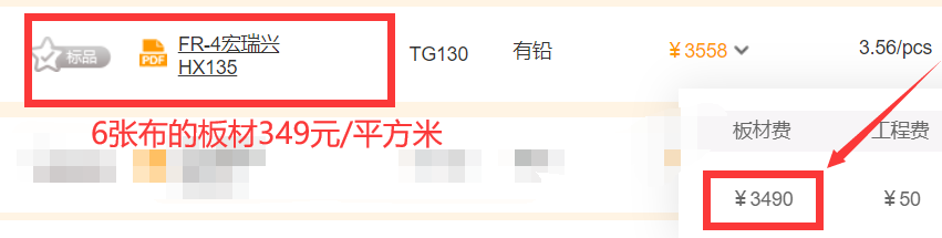 01 嘉立创真A级板材(8张布、阻燃)PK某个别同行(6张布、阻燃)板材,1平方米便宜51元。