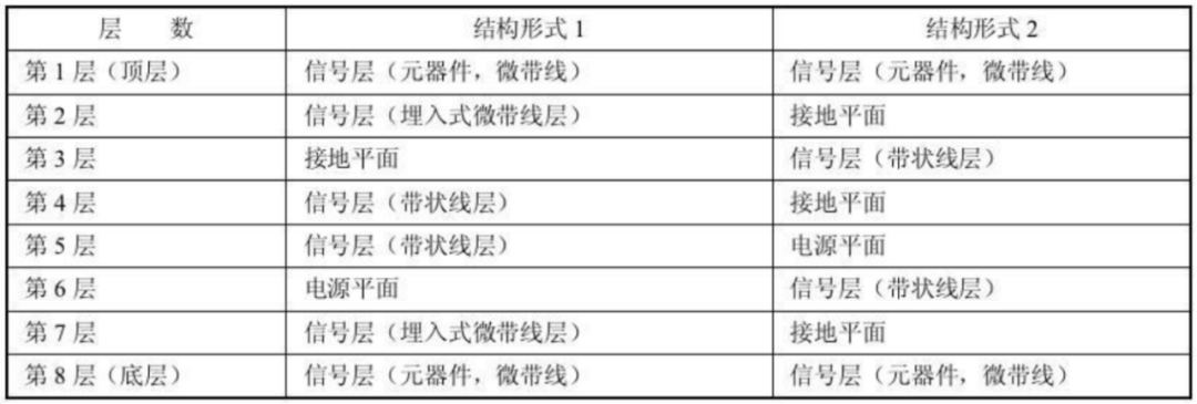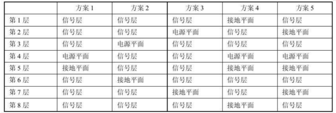 八层板通常使用下面三种叠层方式