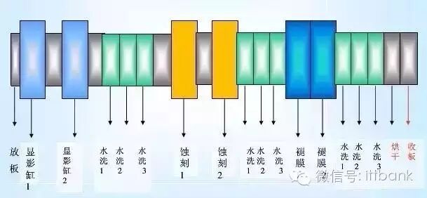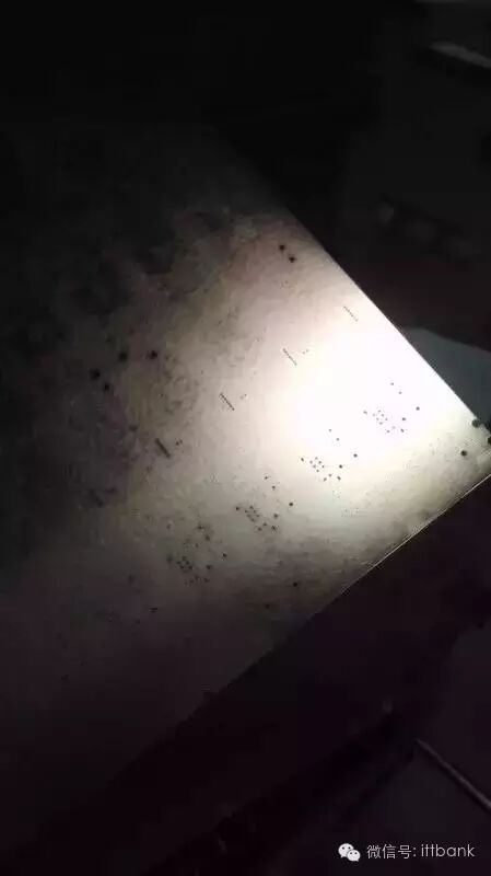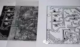 在覆铜板表面会涂一层感光液体,经过80度的温试烤干,再用菲林贴在PCB板上,再经过紫外线曝光机曝光,撕下菲林。